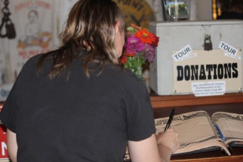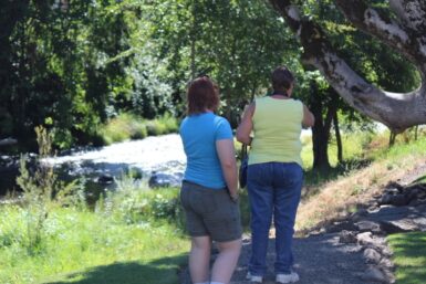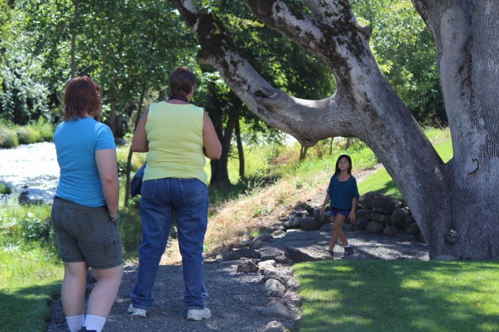 my grandaughter Chloe and my other daughter and grandaughter came up to watch grandkids play football Chloe was on home study for the week so we took a field trip to the Butte Creek Mill ,she is the one in the blue the tallest one , Talla is the one with the curly hair , Chloe wrote a report and took a photo to school
